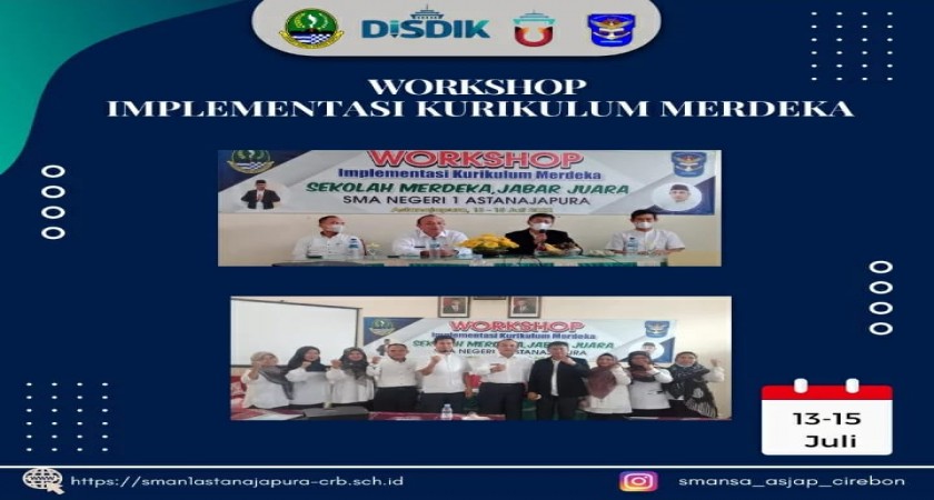 Workshop Implementasi Kurikulum Merdeka (IKM) SMA Negeri 1 Astanajapura Tahun pelajaran 2022/2023 dilaksanakan mulai tanggal 13-15 Juli 2022. Implementasi kurikulum Merdeka sebagai bentuk fasilitasi Kemendikbud Ristek melalui Direktorat Jenderal Guru dan Tenaga Kependidikan yang ditujukan kepada Bapak/Ibu guru dan para kepala sekolah dalam mempersiapkan keterlibatannya pada Kurikulum Merdeka pada tahun ini hingga kedepannya.